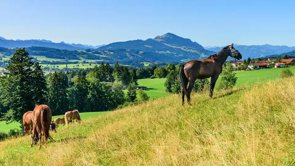 Entdecken Sie die faszinierende Welt der Pferde auf unserem idyllischen Hof inmitten der atemberaubenden Landschaft des Allgäus. Unser Pferdehof bietet Ihnen eine einzigartige Kombination aus Reitangeboten und gemütlichen Ferienwohnungen, um Ihren Aufenthalt zu einem unvergesslichen Erlebnis zu machen.